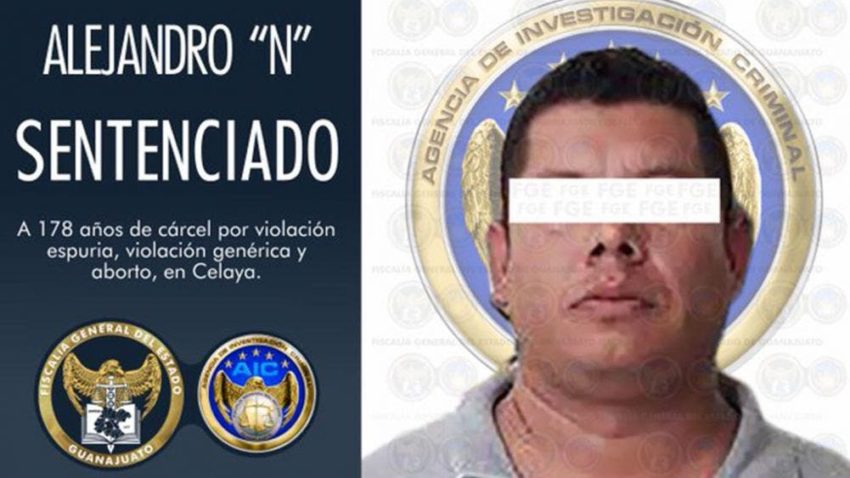 Sujeto es condenado a 178 años de prisión por abuso sexual y aborto en dos menores. Luego de que se le probara su responsabilidad por los delitos de abuso sexual y aborto, en agravio de dos menores de edad en el estado de Guanajuato, Alejandro “N” fue condenado a 178 años de prisión, esto lo confirmó la Fiscalía General del Estado (FGE) de Guanajuato.