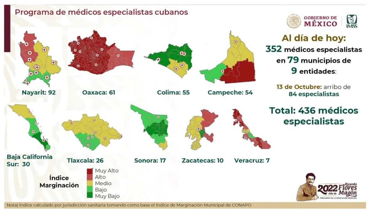 Se espera que el próximo 13 de octubre arriben a México otros 84, que igualmente se desplegarán en unidades médicas de las mismas condiciones sociales y sumarían ya 436.