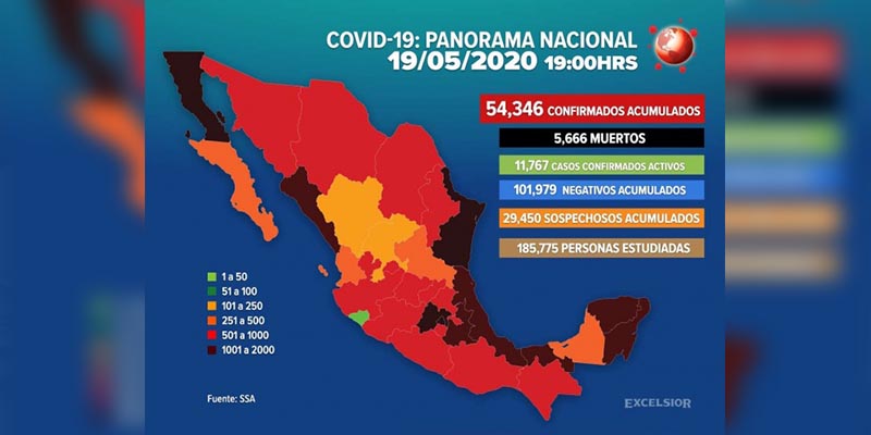 Suman 54 mil 346 los casos de coronavirus en México.- Autoridades de la Secretaría de Salud federal actualizaron el número de casos positivos por Covid-19, el cual ya es de 54 mil 346 en México.