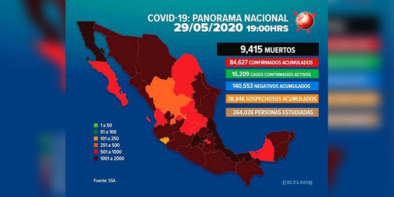 Suman 9 mil 415 los muertos por Covid-19 en México.- Autoridades de la Secretaría de Salud informaron que el número de muertos por Covid-19, incrementó a 9 mil 415 en México.