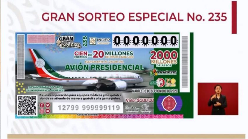 “(El avión) se va a convertir en dinero, estamos considerando entregar premios a los 100 que ganen de 20 millones de pesos (841.407 dólares) a cada uno, dos mil millones (unos 84 millones de dólares)”, afirmó López Obrador en una conferencia de prensa.