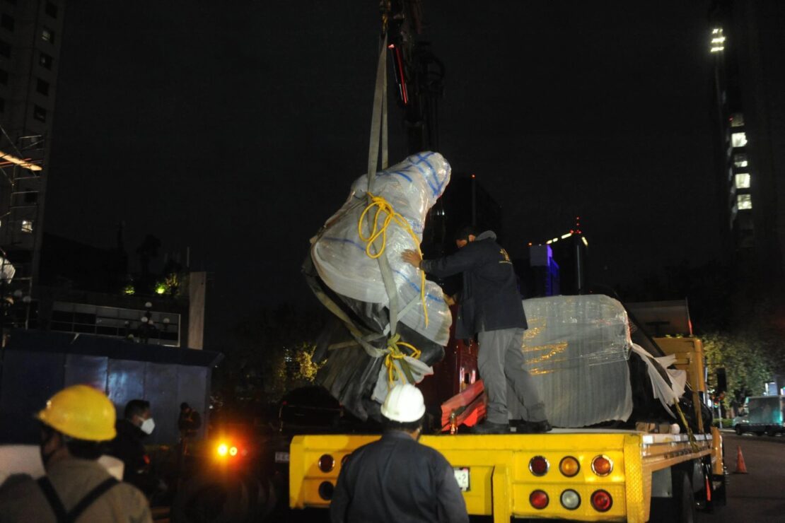 Tras críticas en redes sociales, la Secretaría de Gobierno de Ciudad de México (Secgob) argumentó en un comunicado que retiró la estatua del Paseo de la Reforma para restaurarla “de manera profunda” y “preservar el patrimonio cultural y artístico”, sin mencionar las manifestaciones.