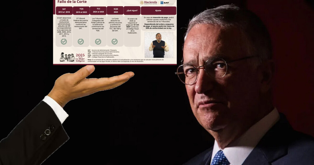 Cuestionado sobre el adeudo de Salinas Pliego y el plazo para que pague los 51 mil millones de pesos (mdp) que tiene pendientes, indicó que el 9 de enero se enviaron los requerimientos de pago correspondientes y que se notificó el jueves pasado, por lo que “a partir del viernes ya surte efectos”.