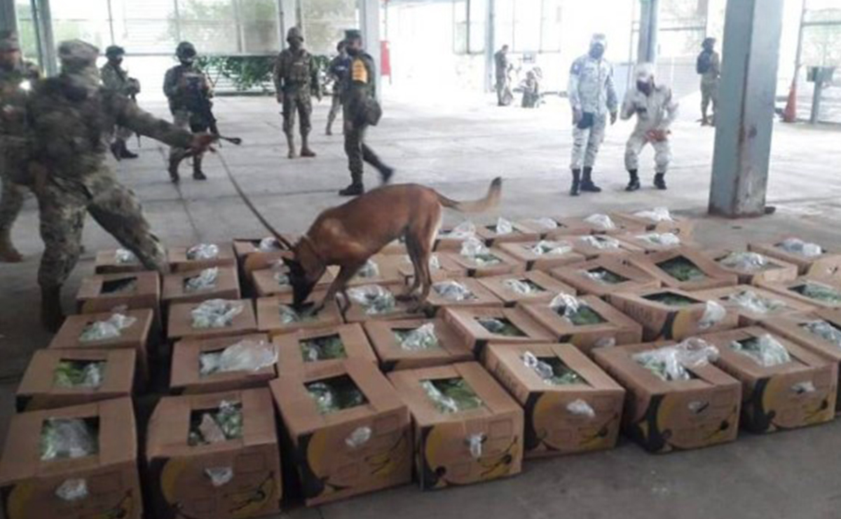 Los federales, junto con los binomios caninos de la Armada de México, revisaron el vehículo de carga e hicieron un marcaje positivo al pasar por el contenedor refrigerado del tractocamión; el cual transportaba cajas con plátanos.