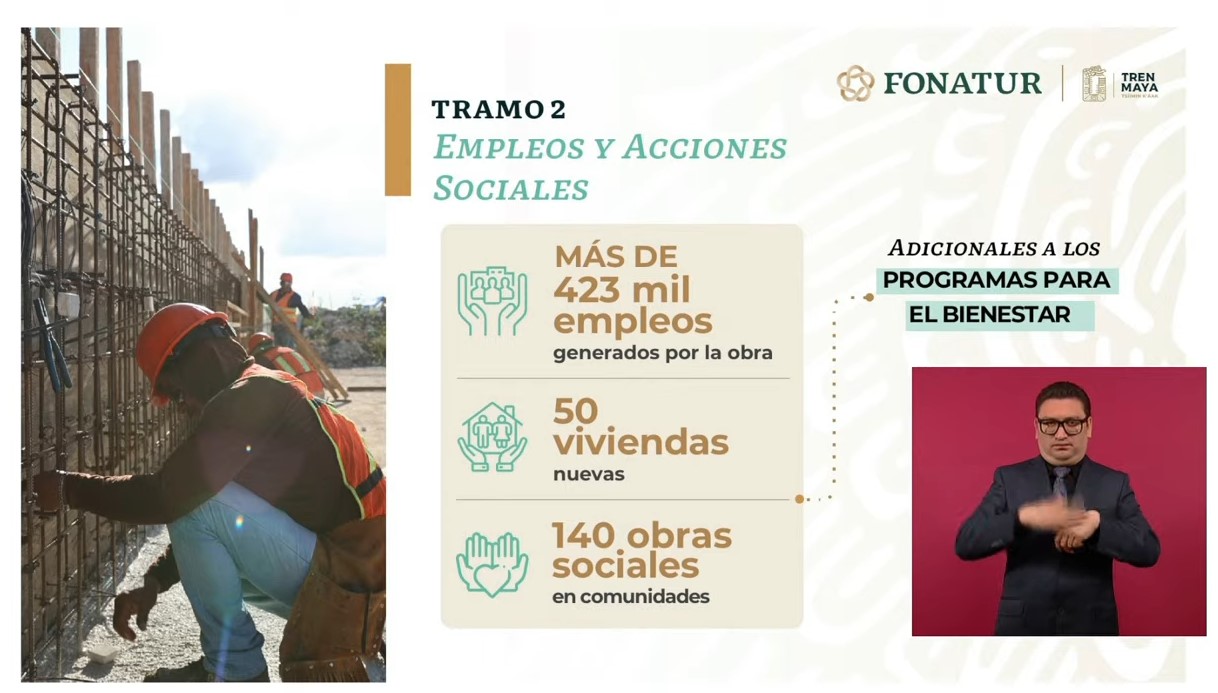 A la par, se realizan 783 obras complementarias, 18 kilómetros de libramiento ferroviario, cinco viaductos, y 42 puentes, lo que ha generado 423 mil empleos.