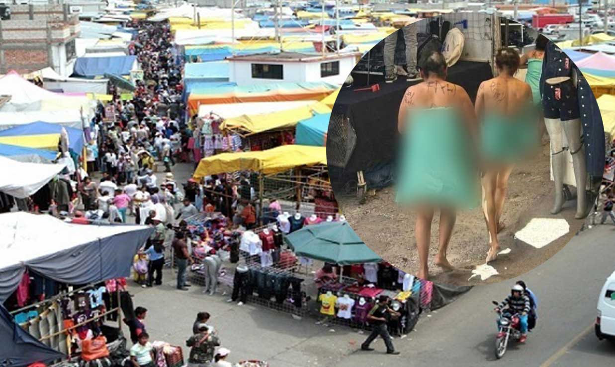 En videos que circularon ampliamente en redes sociales, se puede ver a las tres mujeres caminando desnudas, una detrás de otra, en medio de los pasillos del tianguis.