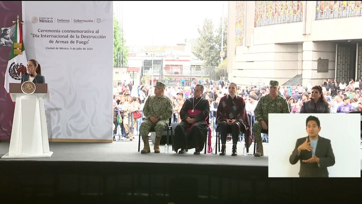 Al encabezar una ceremonia conmemorativa por el Día Internacional de la Destrucción de Armas de Fuego, declarado por la ONU desde 2001, Sheinbaum afirmó que el camino hacia la felicidad es la fraternidad y la construcción de una sociedad justa, libre y democrática. “Sí al desarme, sí a la paz”, proclamó la mandataria acompañada de funcionarios federales y locales, así como de jerarcas de la iglesia católica. Destacó que desde el inicio del año, se han retirado más de dos mil armas, en un acto que, más allá del número, representa una oportunidad para salvar vidas y sanar el tejido social.