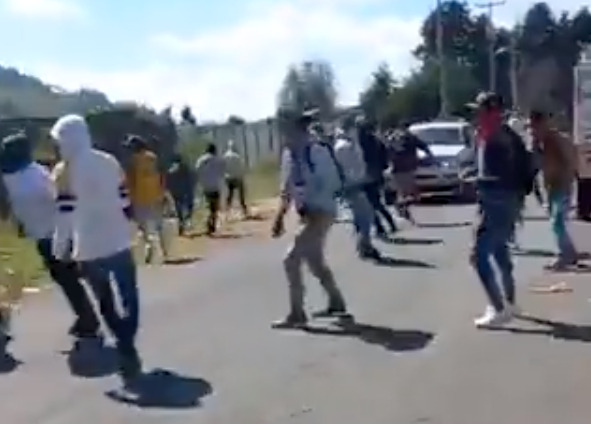 Ante las piedras, los policías respondieron accionando armas de fuego al aire y hacia otras direcciones, provocando que los inconformes corrieran y se refugiaran en casas de la comunidad. Afortunadamente hasta el momento no se reportan heridos.