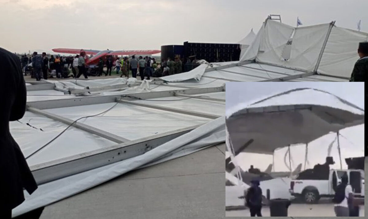 El evento, que lleva ya varios años realizándose en la base ubicada a un costado del Aeropuerto Internacional Felipe Ángeles (AIFA), fue opacado por la caída de una gran carpa y una estructura metálica.