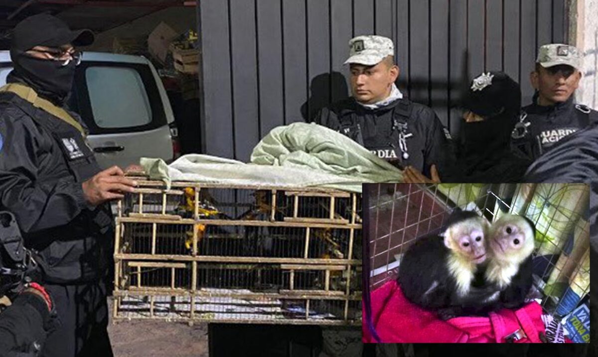 Allí los agentes encontraron un total de mil 500 aves, algunas de ellas en peligro de extinción, además de dos monos capuchinos y cinco cachorros Pomerania.