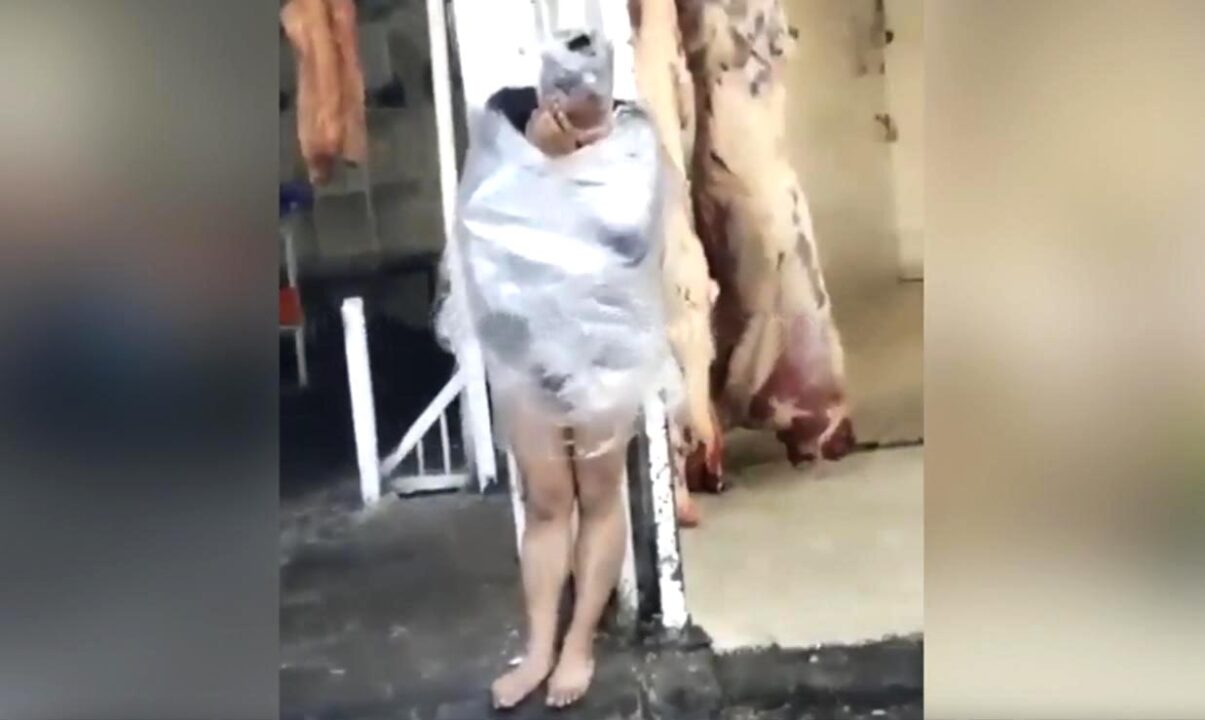 Allí, pese a las súplicas del supuesto asaltante, lo desnudaron de manera violenta para luego atarlo a un poste con abundantes capas del polietileno conocido como Vitafil, en lo que comúnmente llaman los comerciantes “emplayar”.