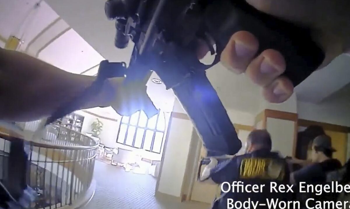 Las imágenes de una cámara corporal de uno de los uniformados, muestra a los agentes entrando a la escuela y enfrentándose posteriormente a tiros con la mujer responsable de una masacre en la que había matado a tres niños y tres adultos.