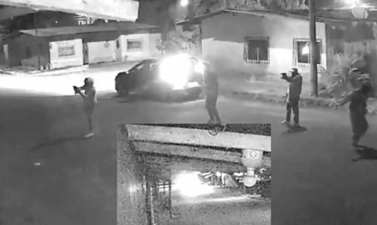 El video de una cámara de seguridad del sector en donde se presentó el ataque, que ha registrado un grave incremento en la violencia, muestra a los delincuentes ametrallando un inmueble con armas automáticas.
