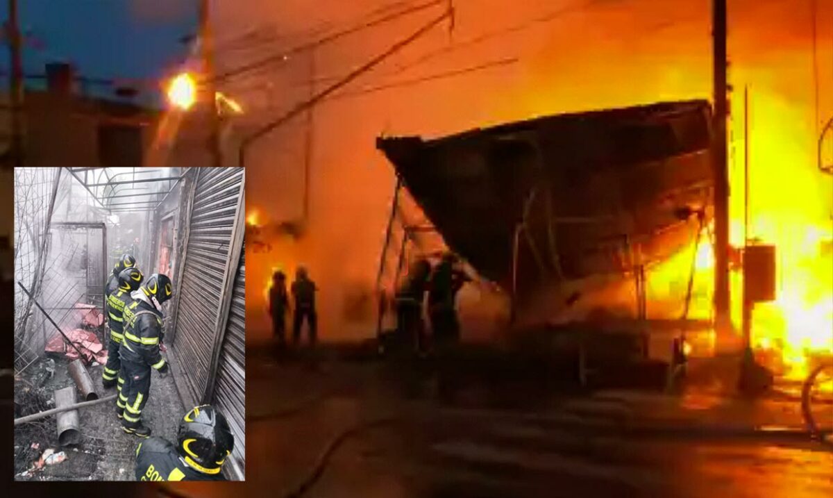 Momentos mas tarde, notificaron que ya habían logrado un 70 por ciento de avance en las labores de control del fuego y mencionaron que los puestos semifijos afectados contenían diversos objetos.