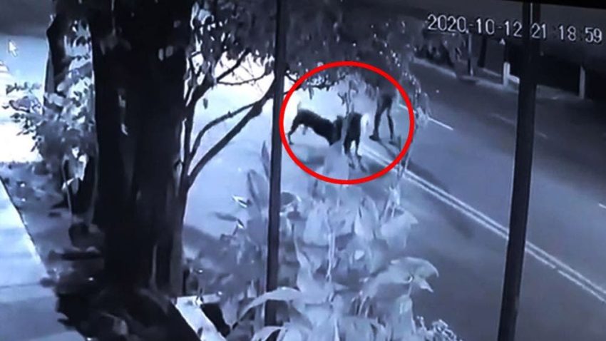 En la grabación puede ver el momento en que la joven camina junto a sus dos perros cuando de pronto aparecen dos canes más grandes y comienzan a atacarlos.