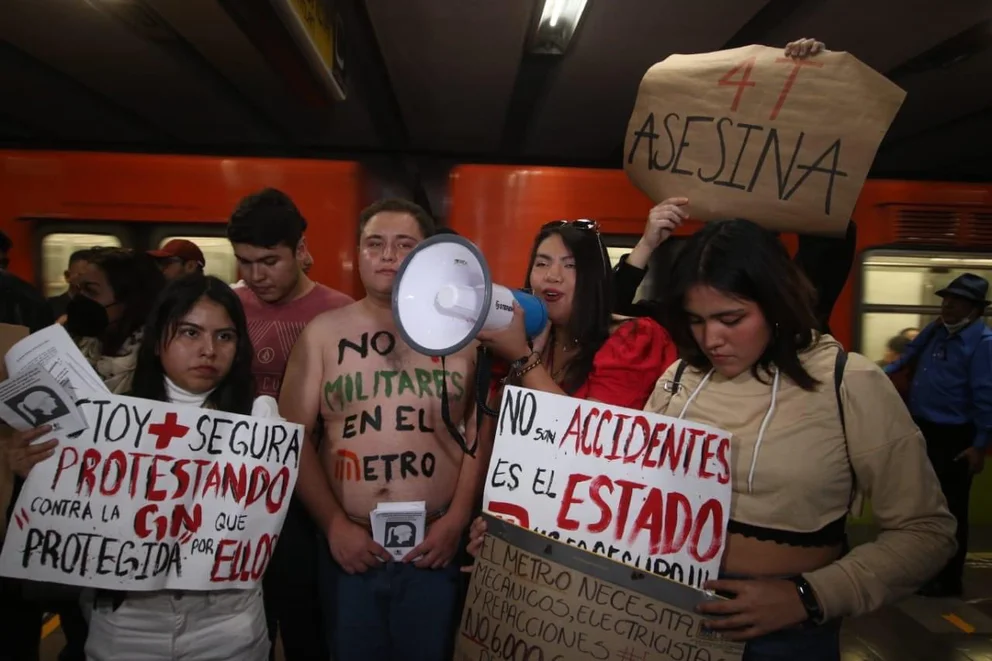 Protestan estudiantes contra presencia militar en el metro de CDMX