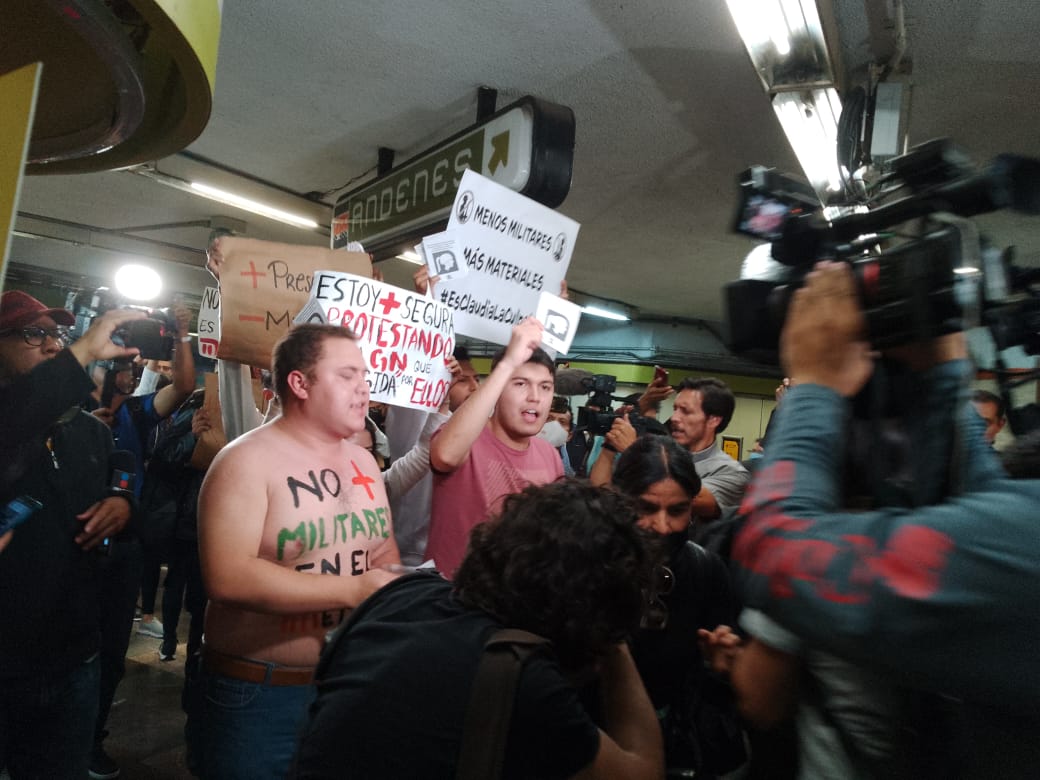 El ingreso de los elementos de la Guardia Nacional a la vigilancia de las estaciones del Metro de CDMX, no ha gustado a muchas personas, entre ellos estudiantes que hoy realizaron una protesta contra lo que denominaron presencia militar.