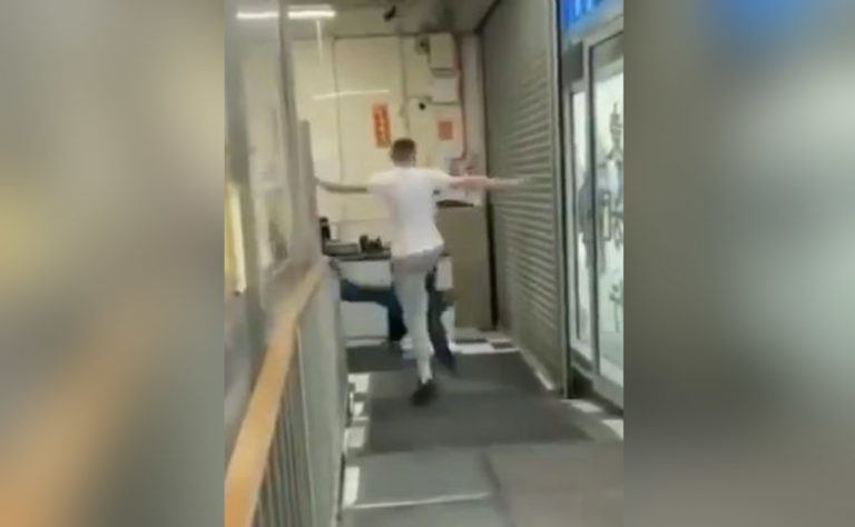 Irlanda. – Noqueado término un hombre blanco en una tienda asiática, luego de intentar entrar a la fuerza para realizar actos racistas.