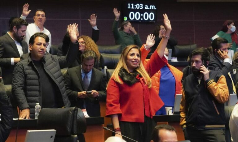 Durante una maratónica sesión instalada en el senado, que comenzó la tarde del miércoles y terminó hasta la mañana de este jueves, la legisladora otorgó su voto a favor de la iniciativa que, entre otras cosas, retira privilegios al Instituto Nacional Electoral (INE) y reduce salarios de sus altos funcionarios.