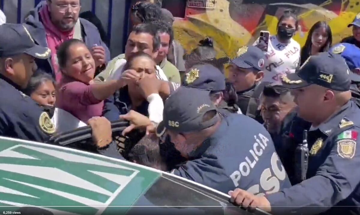 Mientras que un grupo de mujeres entraron por una puerta; elementos de la policía de la CdMx intentaban subir a la maestra a la patrulla, mientras que el grupo de personas la jaloneaba para tratar de agredirla. Finalmente los policías lograron subirla a la patrulla e intentaron dispersar a toda las personas.