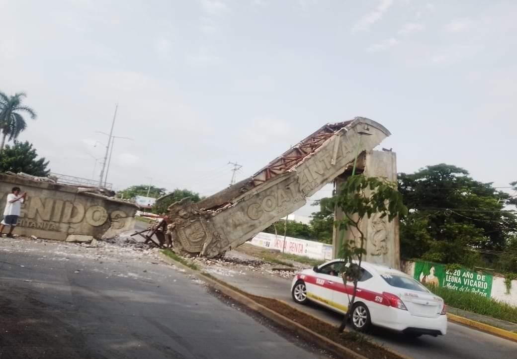 El inexorable paso del tiempo, la falta de mantenimiento, sumado a la negligencia de las autoridades correspondientes, dieron como resultado el colapso este martes del arco que da la bienvenida al municipio de Coatzintla en el estado de Veracruz.