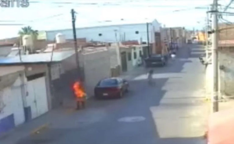 El sujeto roció con combustible a una indigente, que estaba sentada en la banqueta y le prendió fuego; luego huyó en una bicicleta, mientras la mujer se quemaba; en la colonia Arboledas de Camargo, en Celaya, Guanajuato.