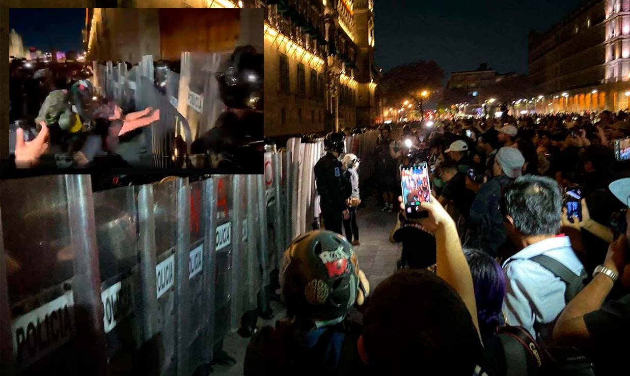 Sin embargo, el ambiente de tensión que prevaleció entre los manifestantes, terminó escalando en un enfrentamiento con granaderos en el Zócalo de la Ciudad de México, cuando un grupo de manifestantes protagonizó un incidente que puso en alerta a las autoridades.
