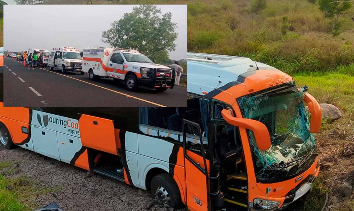 Vuelca autobús de turismo en Veracruz, hay 44 lesionados
