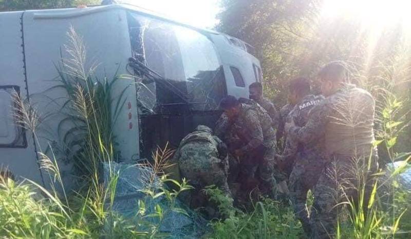 En la volcadura del pasado jueves, se reportó un saldo preliminar de al menos 17 elementos heridos y uno fallecido, quienes viajaban en un autobús habilitado como transporte de la Secretaría de Marina.