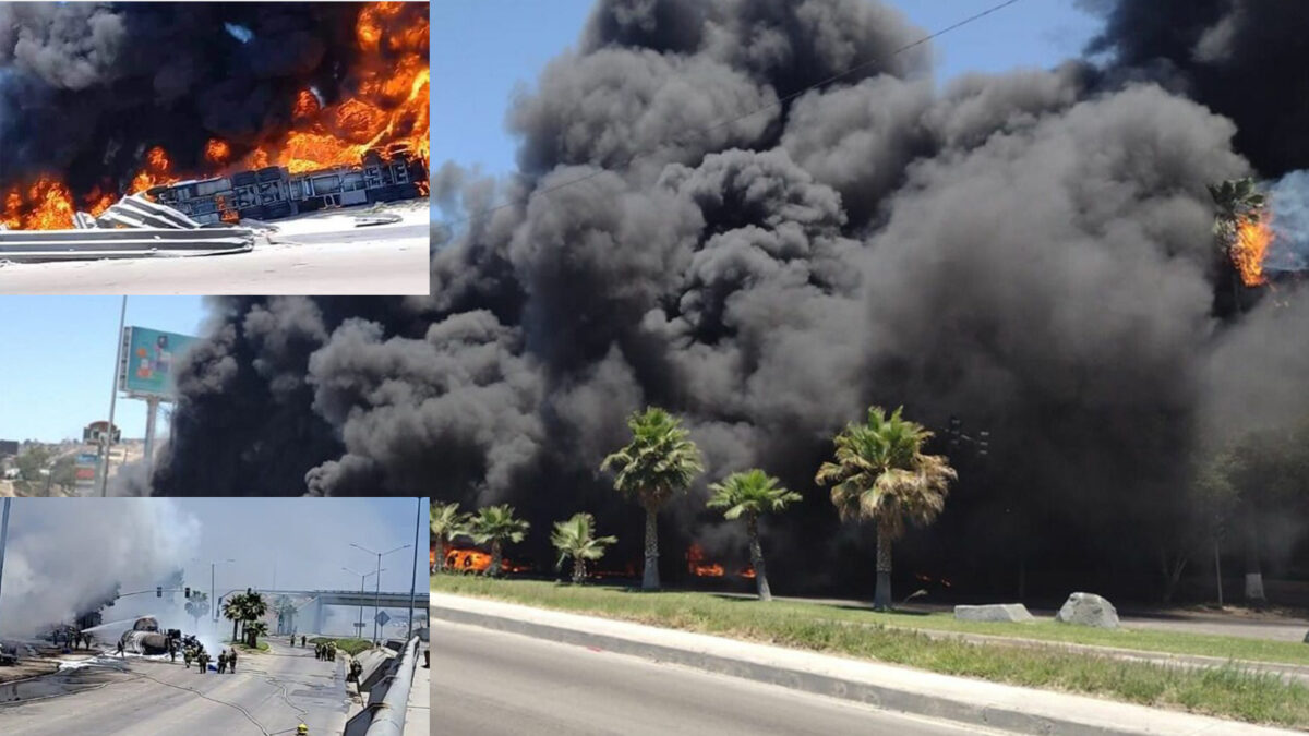 Y es que una pipa doble que transportaba combustible estalló alrededor del mediodía, a la altura del centro comercial Los Álamos de Tijuana, derivado de un accidente vial.