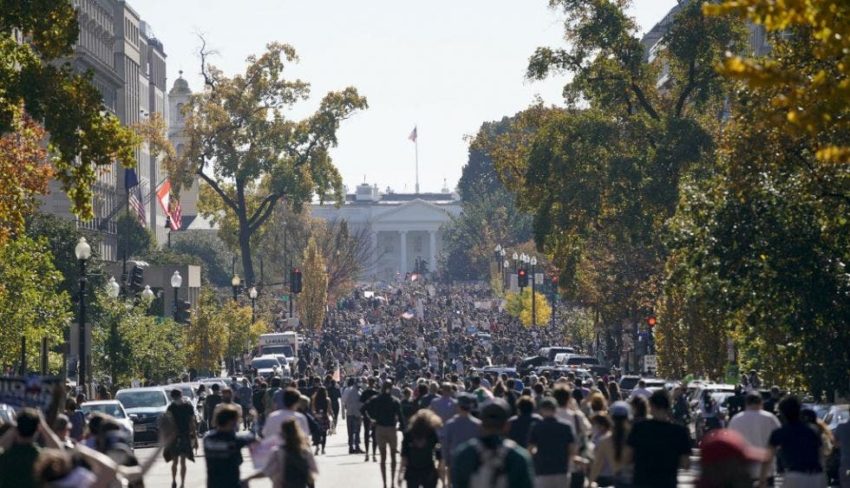 No importando las recomendaciones para evitar posibles contagios de Covid-19, una multitud de personas se apostó a las afueras de la Casa Blanca, para celebrar el triunfo del candidato demócrata.