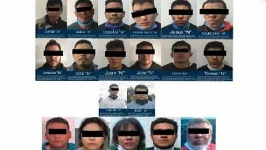 El vocero de la FGJCDMX, Ulises Lara López, presentó las fotografías y nombres de los 12 hombres capturados, ellos son: David N, Erick N, Fabián N, Francisco N, Jesús N, Narciso N, Jonatan N, José N, Juan N, Julio N, Luis N y Tomás N.