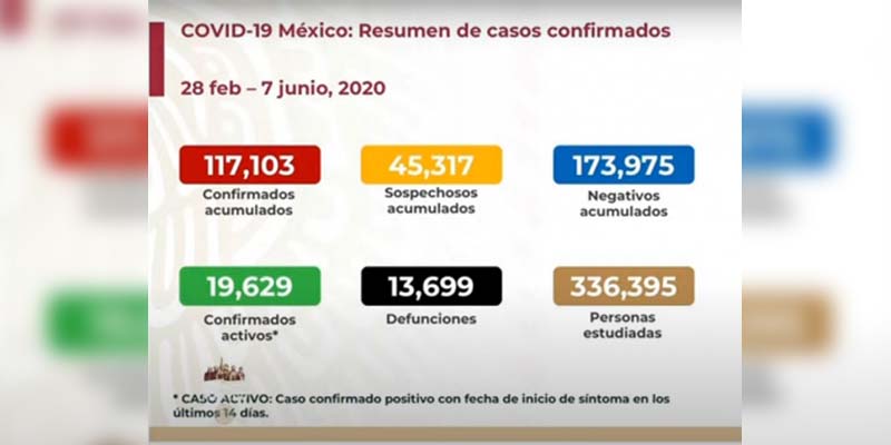 Ya son 117 mil 103 casos de Covid-19 en México.- Autoridades de la Secretaría de Salud informaron que los casos confirmados de Covid-19 aumentaron a 117 mil 103 en México.