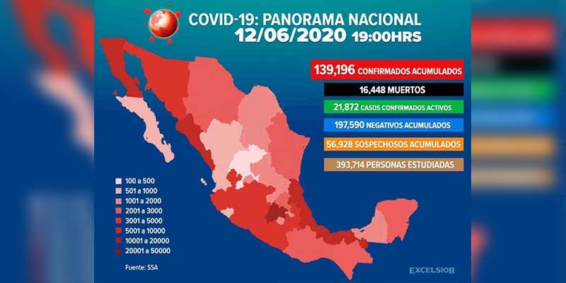 Ya son 139 mil 196 casos positivos de Covid-19 en México