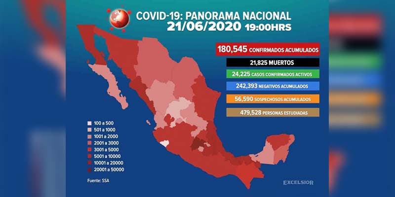 Ya son 180 mil 545 casos positivos de Covid-19.- Autoridades de la Secretaria de Salud indicaron que ya son más de 180 mil casos positivos de Covid-19 en México.