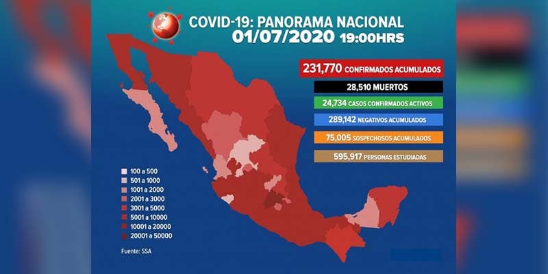 Ya son 231 mil 770 casos positivos de Covid-19 en México.- Autoridades de la Secretaria de Salud indicaron que ya son más de 231 mil casos positivos de Covid-19 en México.