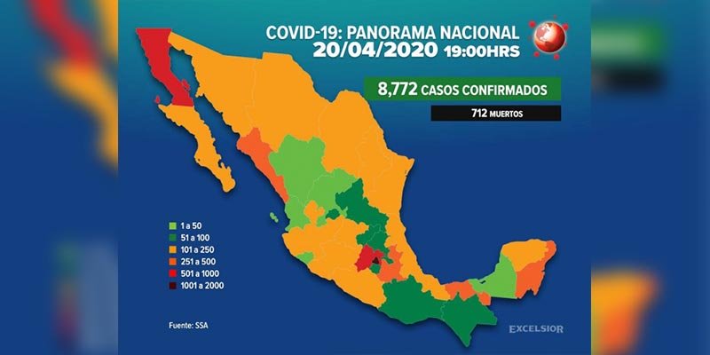 Ya son 712 muertos y 8 mil 772 casos por coronavirus.- Las autoridades de la Secretaría de Salud federal (Ssa) informaron que en México ya son 712 muertos por coronavirus.