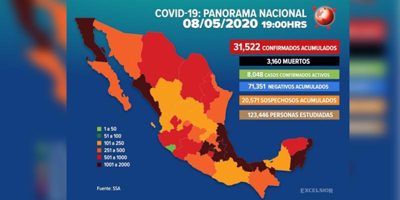 Ya son más de 3 mil muertos por coronavirus en México.- Autoridades de la Secretaría de Salud federal informaron que la cifra de muertos por coronavirus incrementó en México a 3 mil 160.
