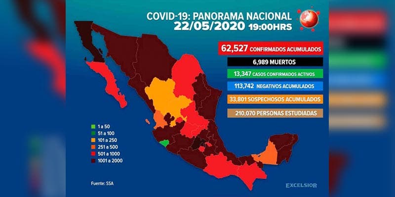 Ya son más de 60 mil casos de Covid-19 en México.- Autoridades de la Secretaría de Salud federal informaron que el número de personas contagiadas por Covid-19 aumentó a 62 mil 527 en México.