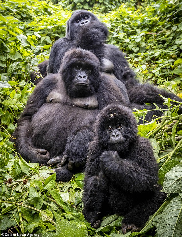 Dos gorilas nada timidos posaron para la selfie de un guardabosques en el Parque Nacional de Virunga en el Congo.