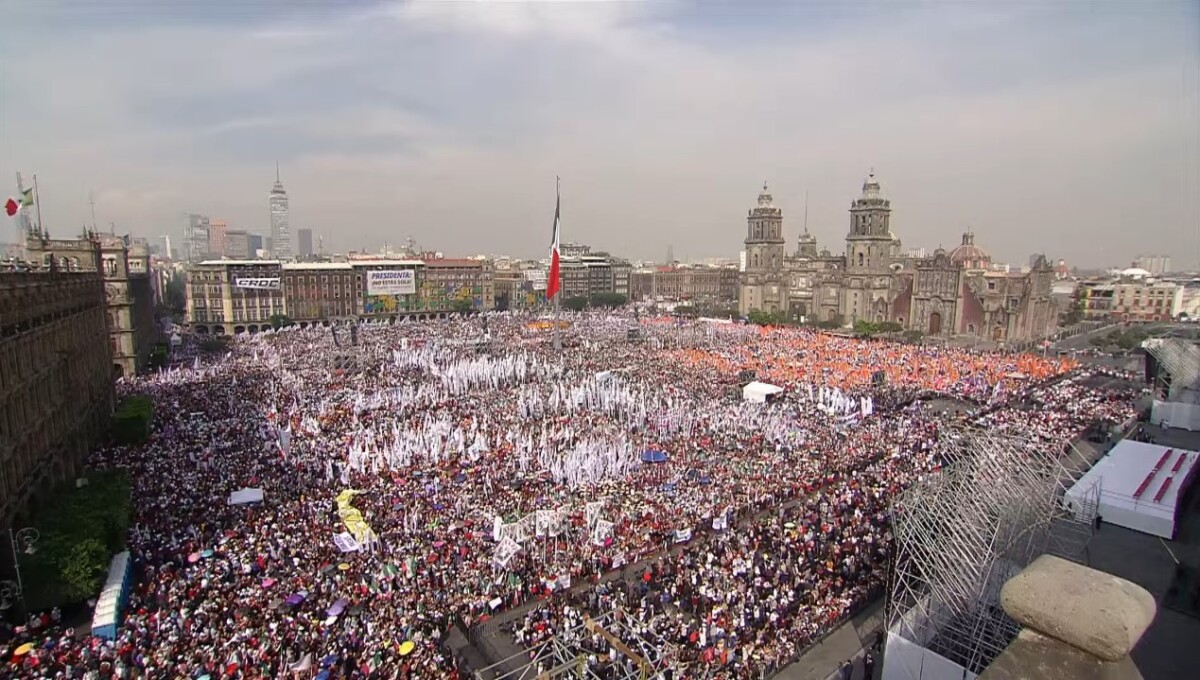 Zócalo desbordado por festejo de 7 años de la 4T